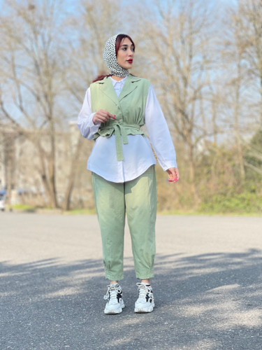 ست شومیز وشلوار و ژیله زنانه کتان فری سایز