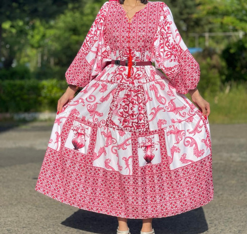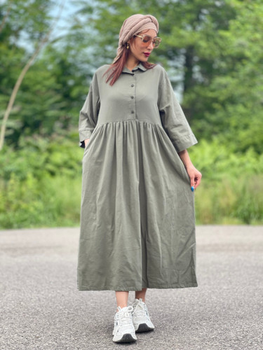 پیراهن زنانه جنس لینن کمر چین وارداتی