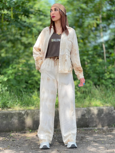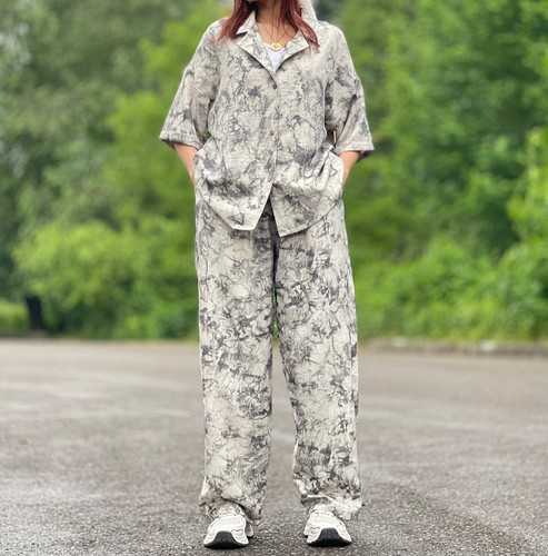 ست شومیز وشلوار زنانه پارچه ماربل آبرنگی وارداتی