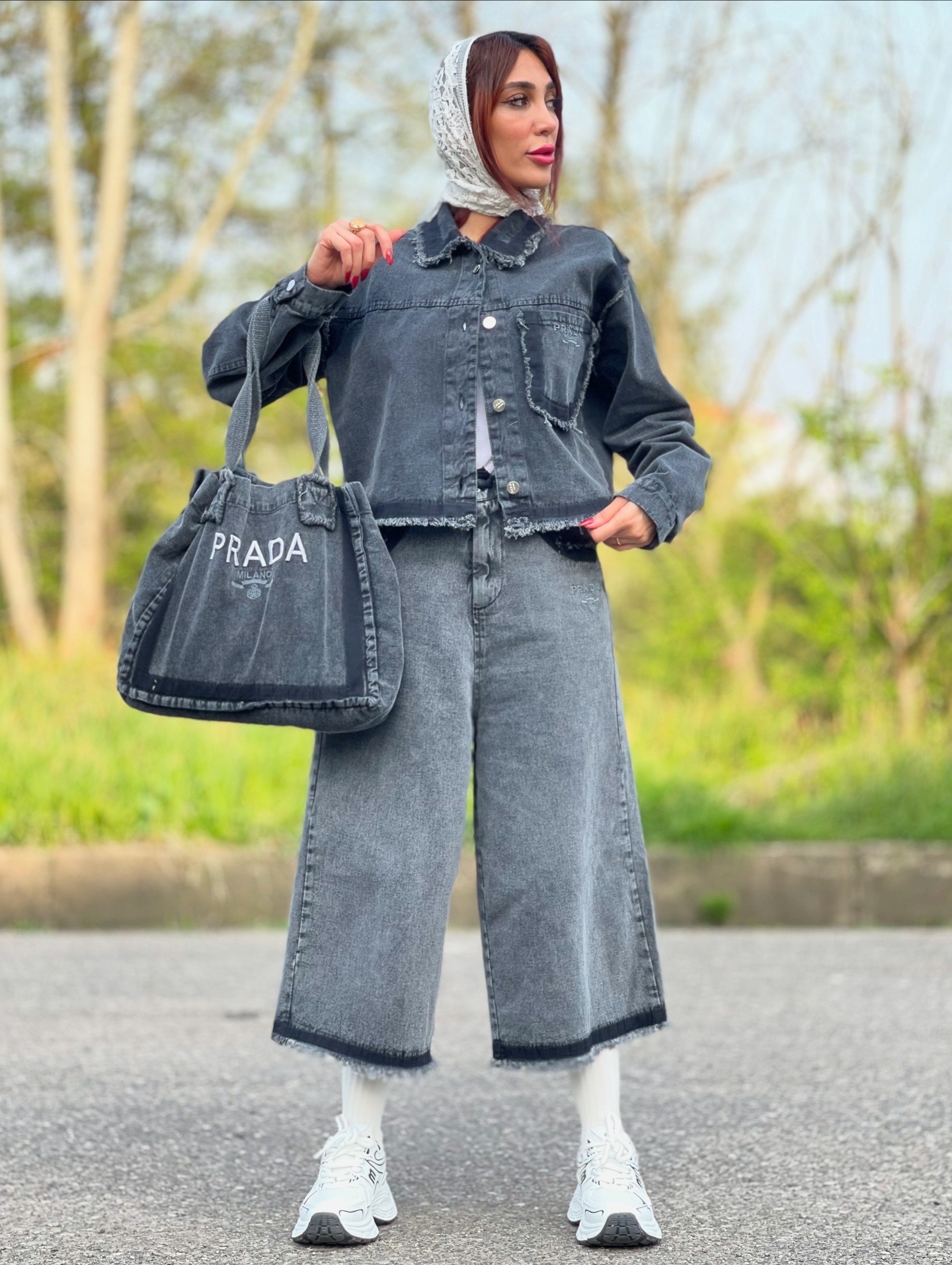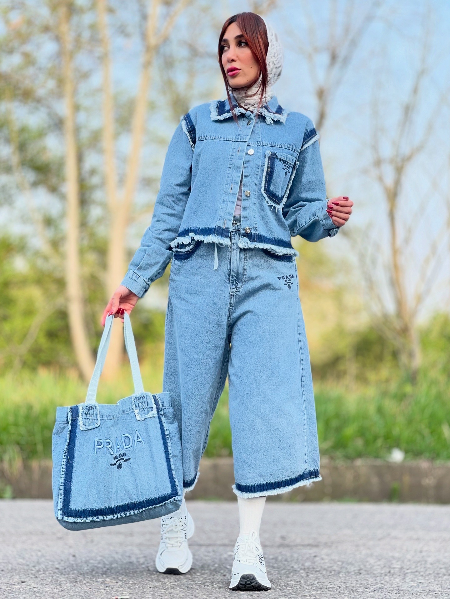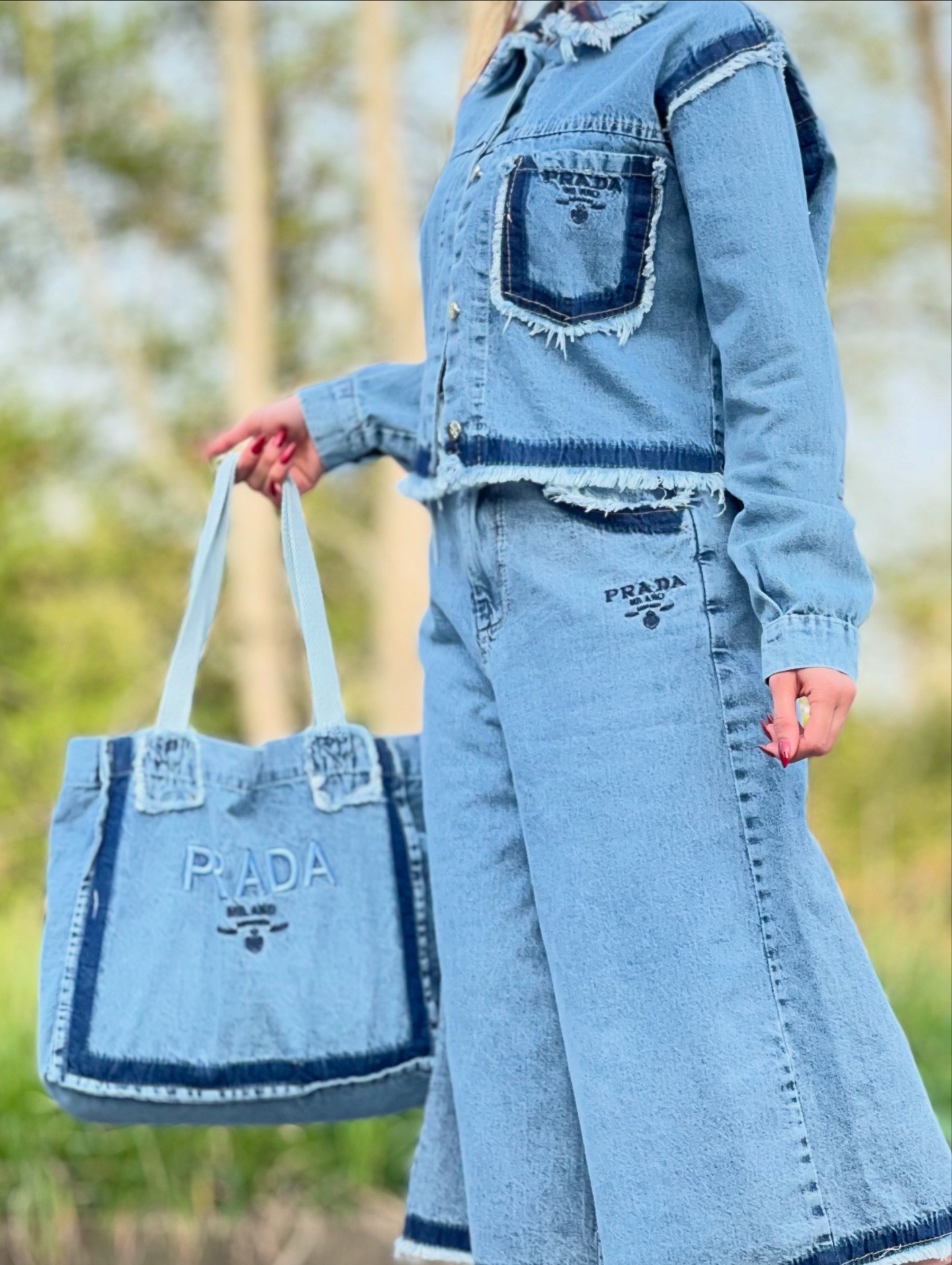 ست کت و شلوار و کیف زنانه جین وارداتی