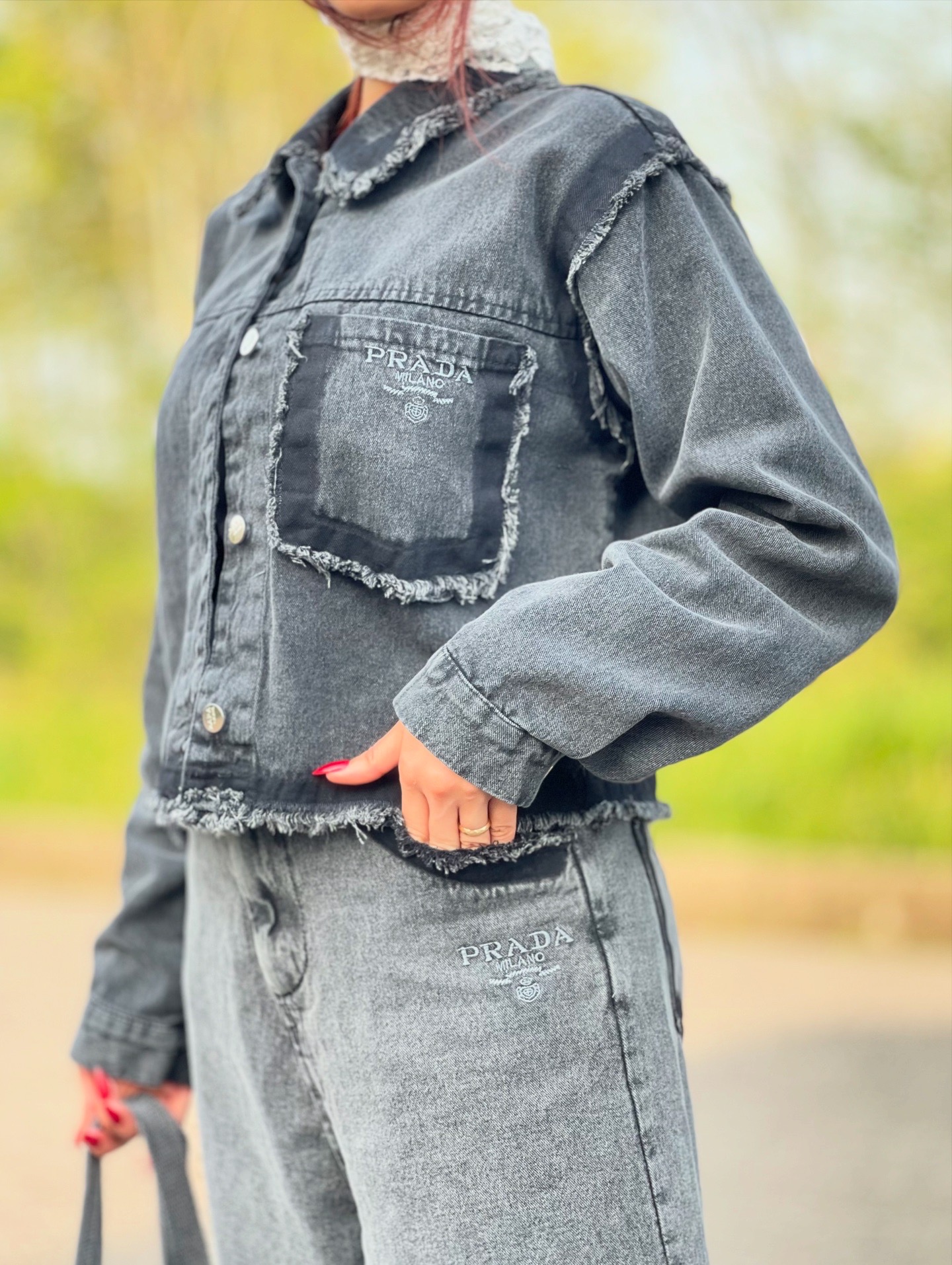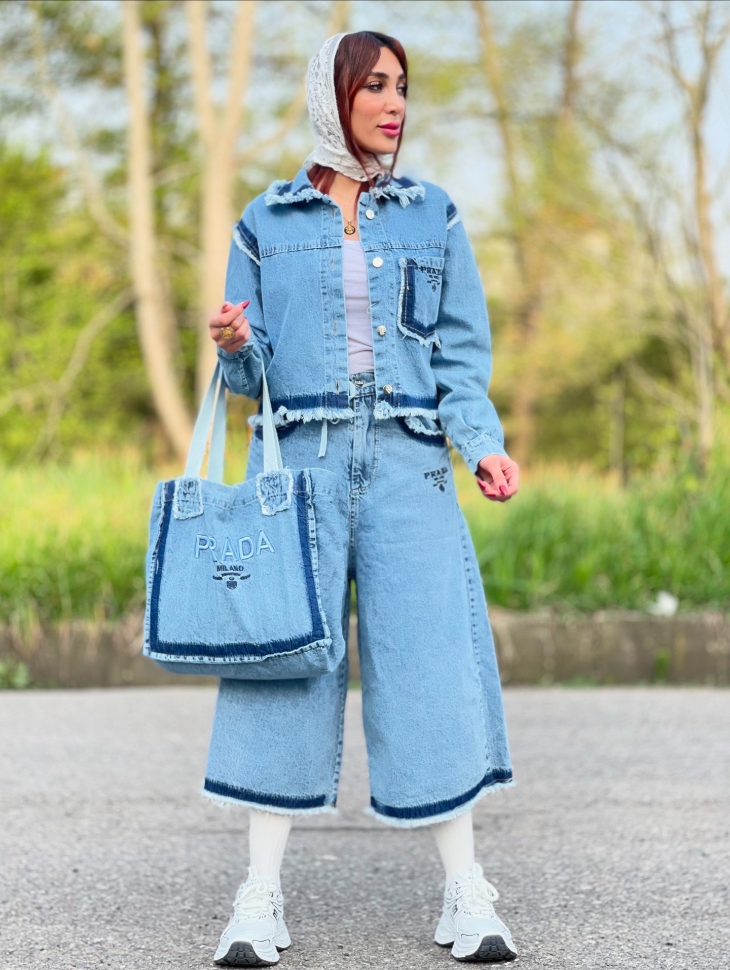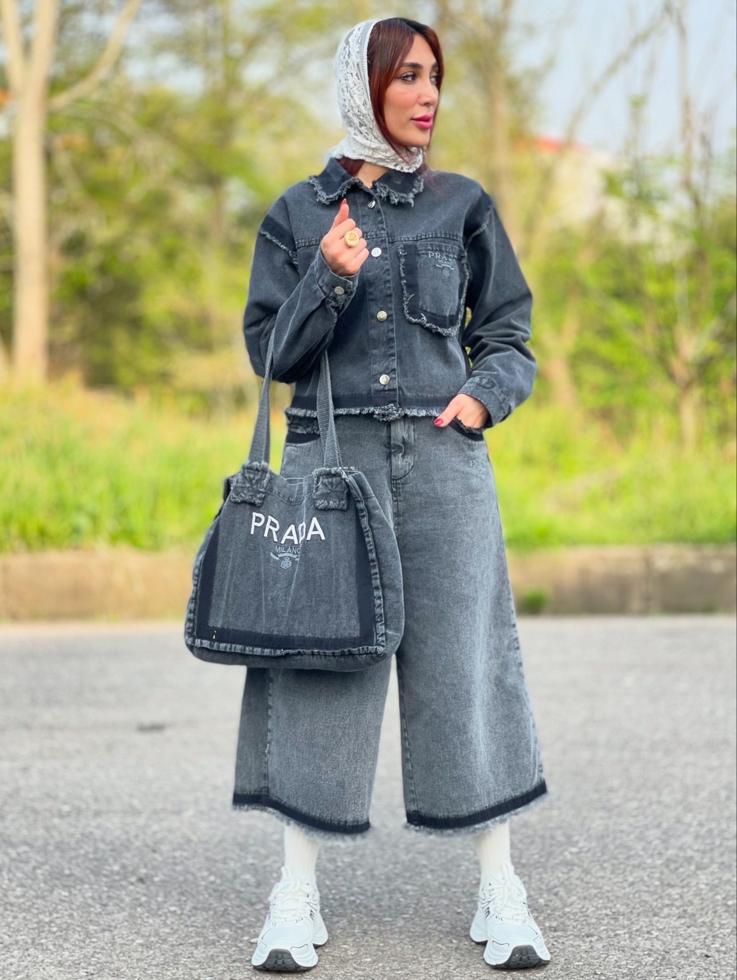 ست کت و شلوار و کیف زنانه جین وارداتی