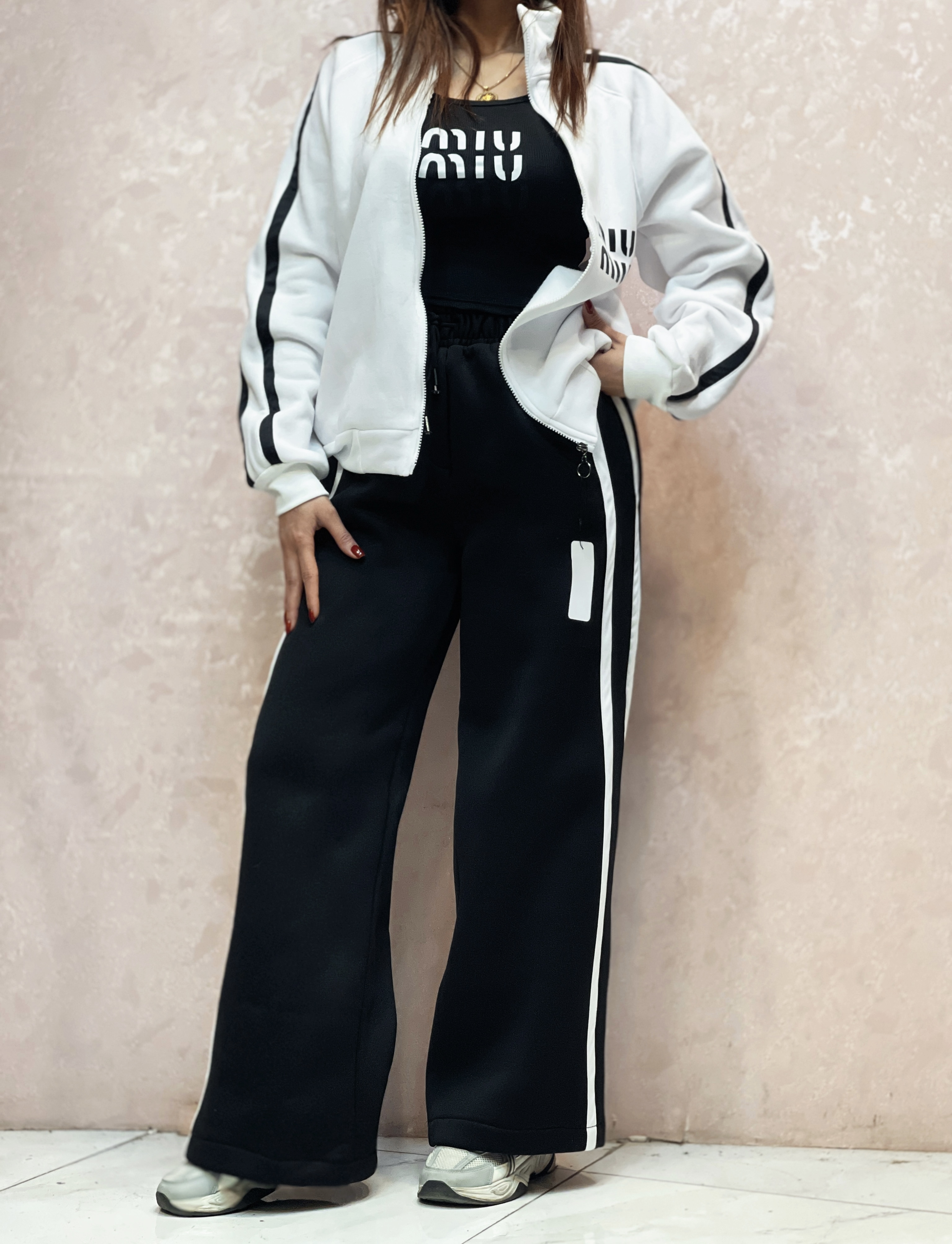 ست ۳تیکه سوییشرت کراپ شلوار زنانه ۳نخ داخل کرک