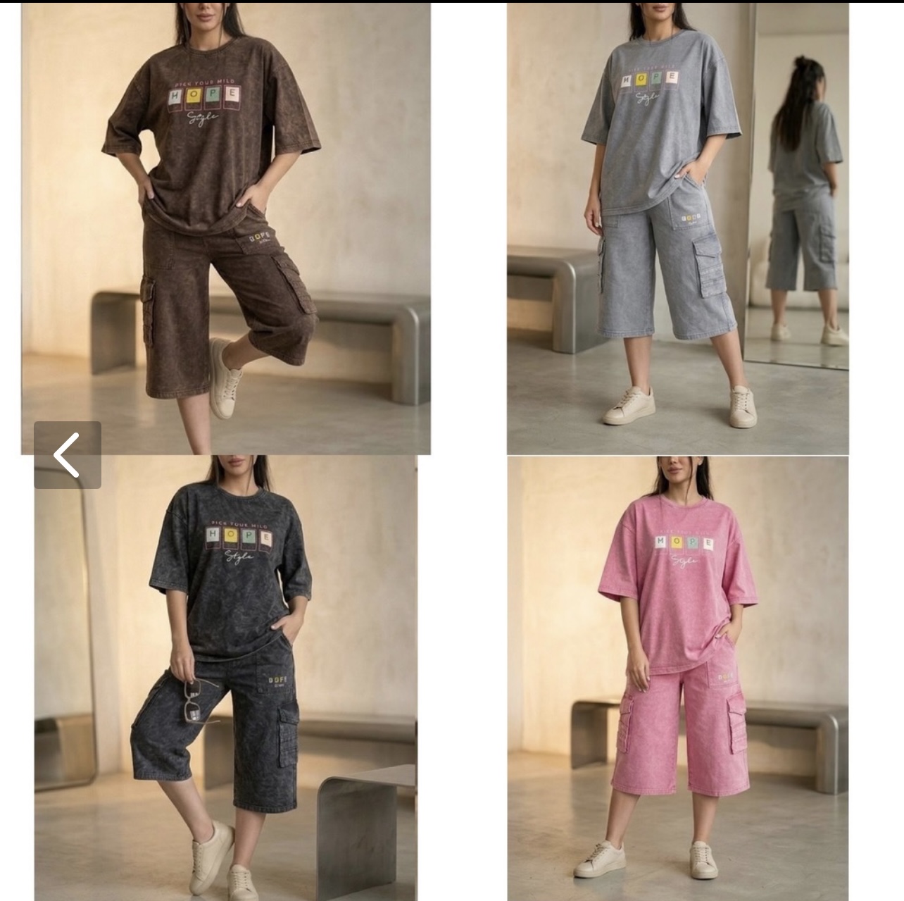 ست تیشرت و شلوار واید زنانه پنبه ماکان سنگشور